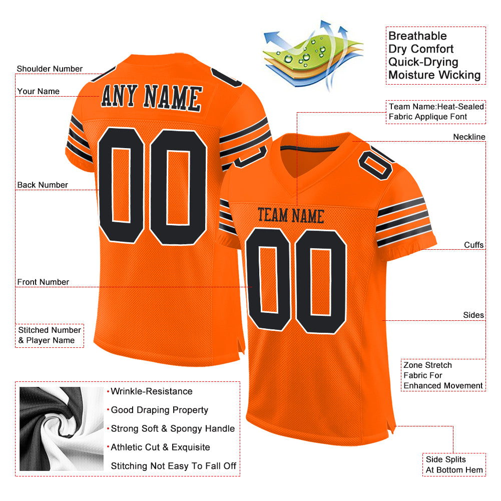 • Custom Orange Black-White Mesh Authentic Football Jersey