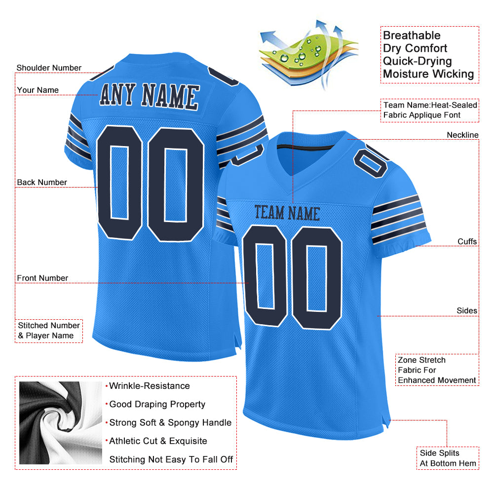 • Custom Powder Blue Navy-White Mesh Authentic Football Jersey