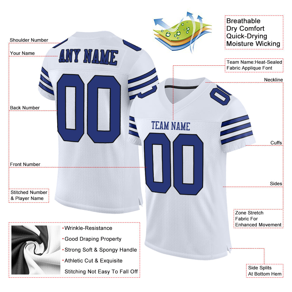 Custom White Royal-Black Mesh Authentic Football Jersey