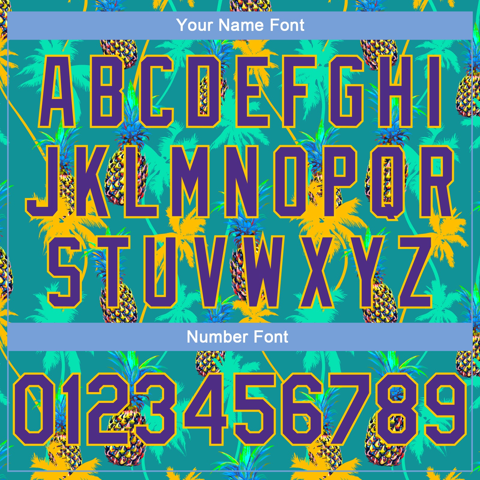 Custom Kelly Green Purple-Gold 3D Pattern Hawaii Palm Trees Pineapples Authentic Basketball Jersey