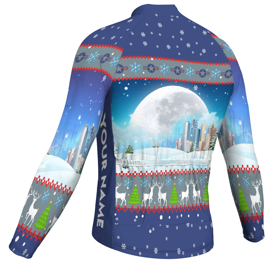 Customized General Atomics MQ-9 Reaper Santa's Sleigh Christmas Winter Thermal Fleece Cycling Jersey For Men